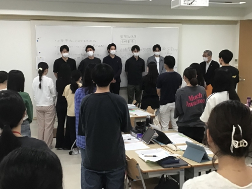 この春から関連病院である福岡新水巻病院で働く卒業生が、学校に挨拶に来てくれました
