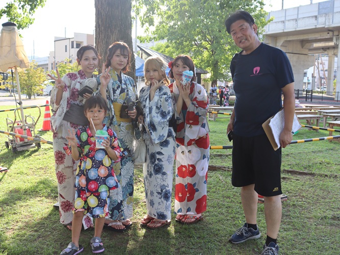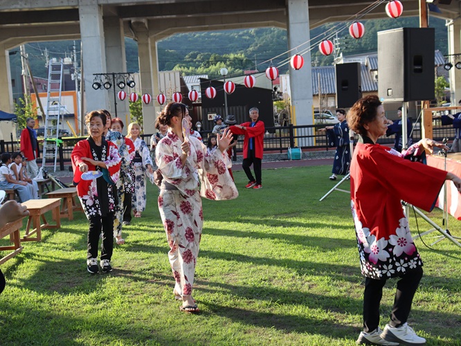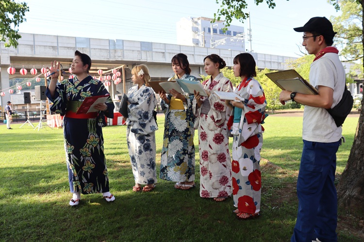 武雄町のまちづくり推進協議会の方や盆踊り実行委員会の方々との顔合わせや打ち合わせから始まり、慣れない経験だらけで最初は緊張していましたが、地域の皆さんに見守られ、一緒に盆踊りを踊ったり様々なイベントを楽しみながら行うことができました