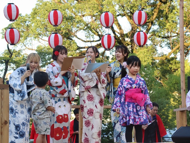 先週の土曜日に武雄町で盆踊りが開催され、1年生4名が司会を務めさせていただきました