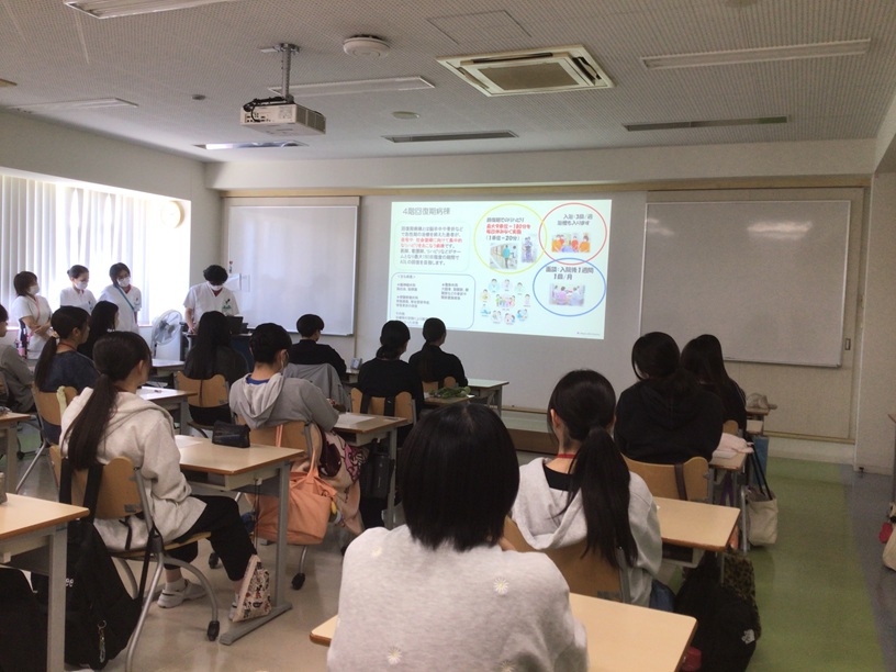 いよいよ病院での実習が本格的に開始する学生たちのために、新武雄病院の看護師さんたちと交流を深め、安心して実習が望めるようにと企画してくださいました![]()
