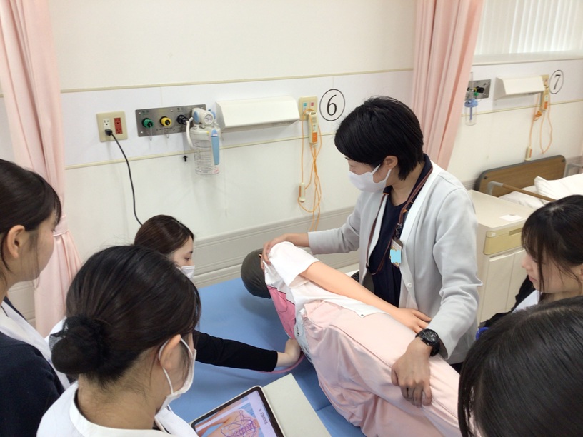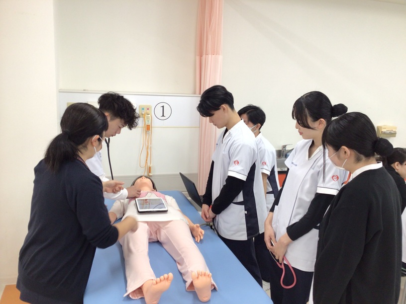 正常と異常の違いが分かるよう、医療訓練用シミュレーターを活用して演習しています。
