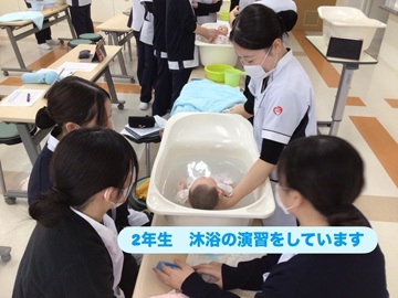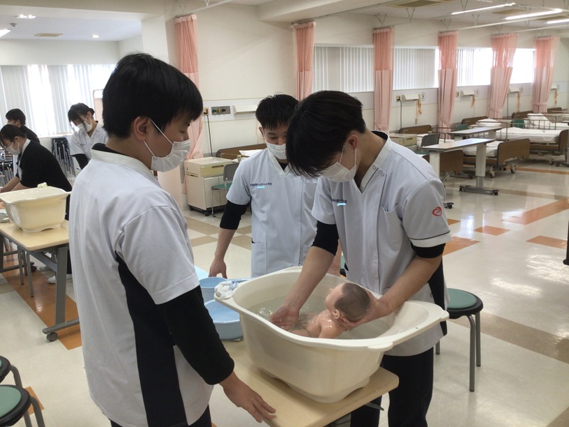 3年生になると実際に新生児の赤ちゃんと関わるので、本当の赤ちゃんをイメージしながら丁寧に洗っていました