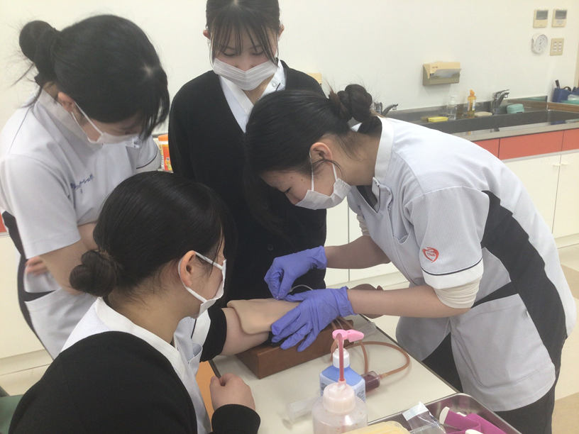 国家試験を乗り越えた3年生は、4月からの臨床を想定した看護技術の練習を行いました