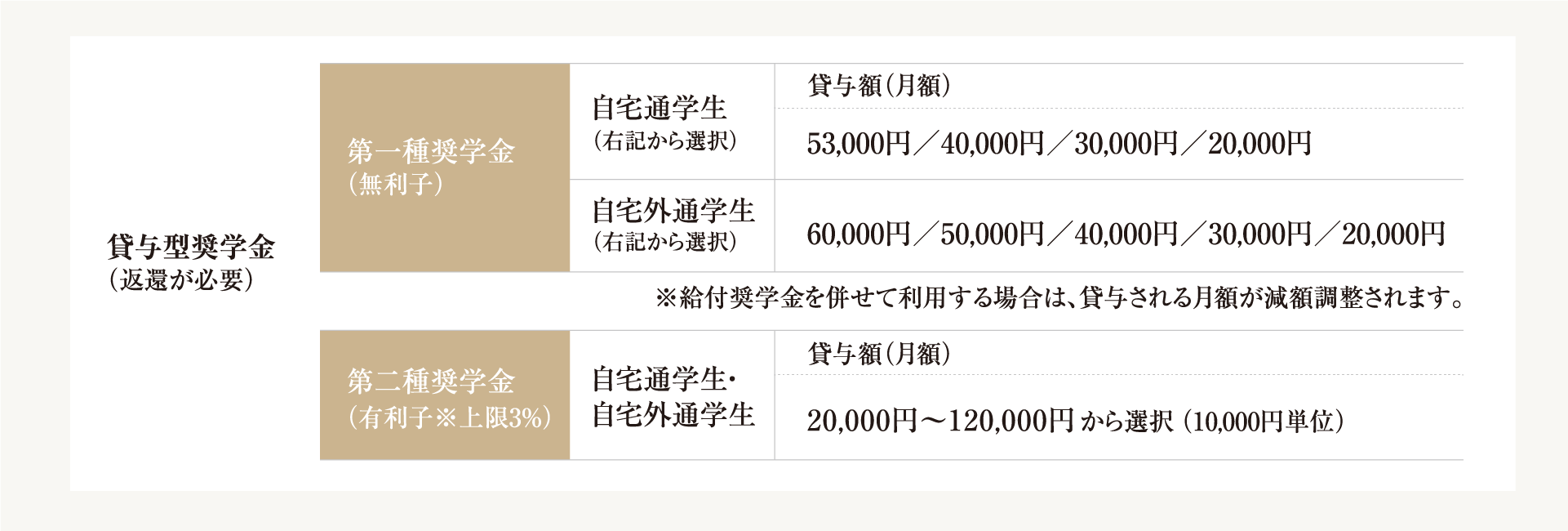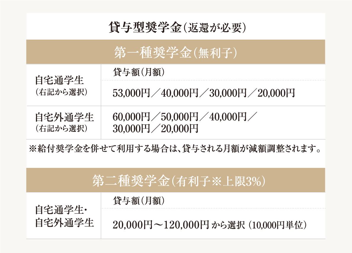 ※2 給付奨学金を受給中は第一種奨学金の貸与月額が調整されます。