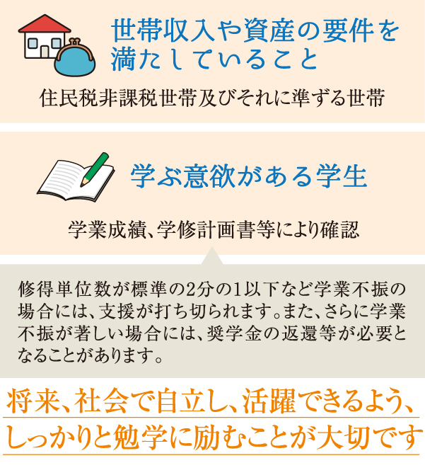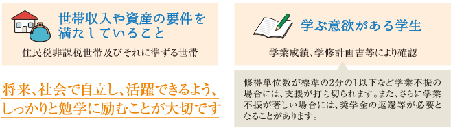 ご利用いただける方:経済的理由により就学に困難がある優れた学生
